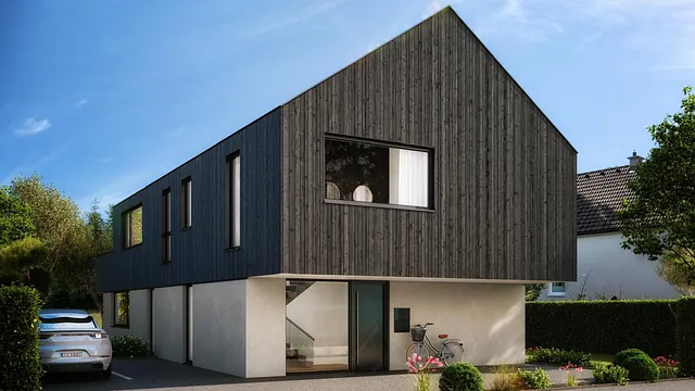 Modernes Doppelhaus in Salzburg-Aigen: Konzeption und Entwicklung durch uns, Umsetzung mit Generalunternehmer und anschließend erfolgreicher Abverkauf der beiden Wohneinheiten. Das Projekt steht für eine ganzheitliche Projektentwicklung – von der Entwicklung des Konzepts über die professionelle Bauabwicklung bis hin zum erfolgreichen Vertrieb.