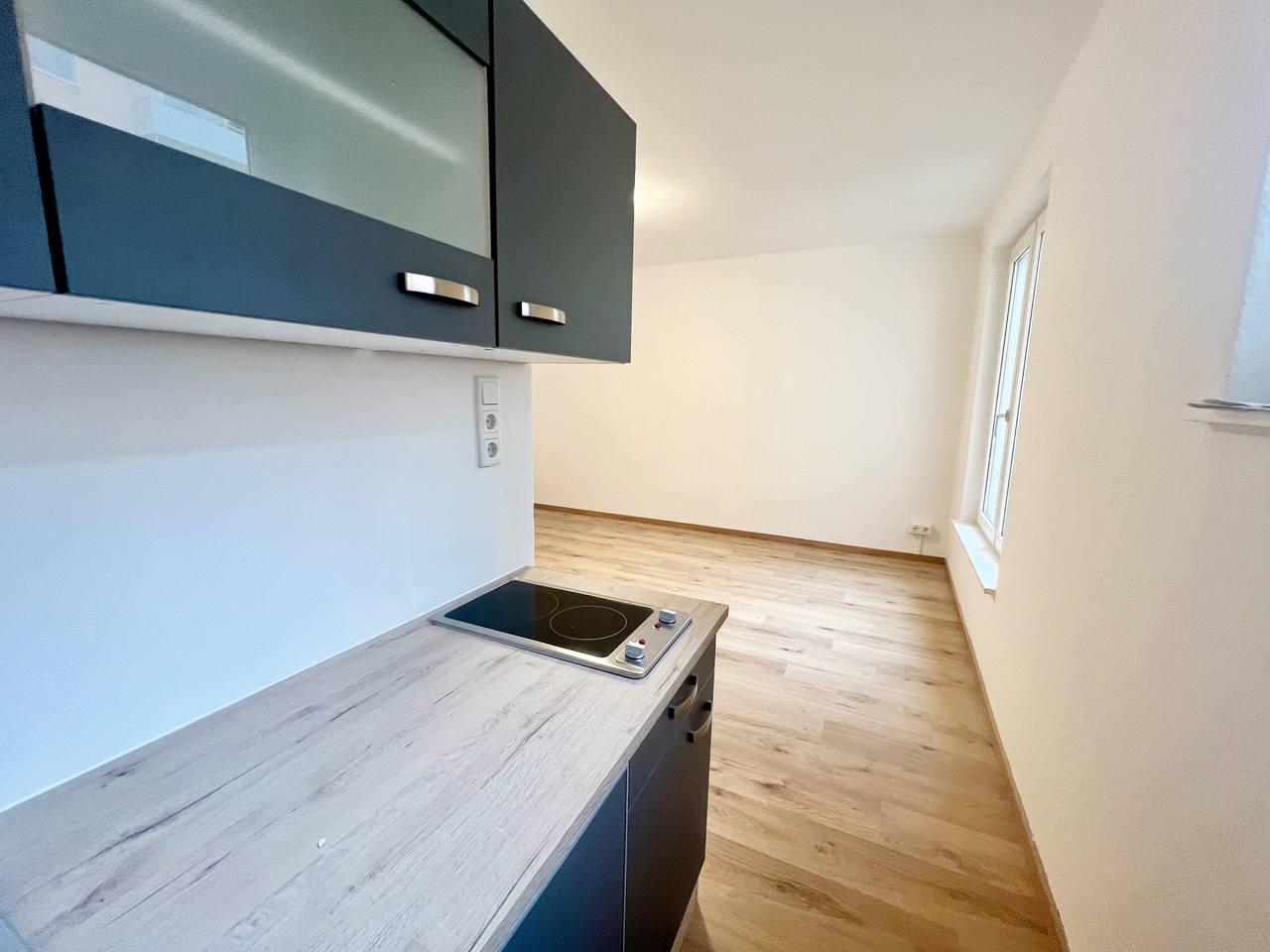 Die ca. 22 m² große, helle Wohnung wurde 2023 umfassend saniert und überzeugt mit hochwertigen Böden, großen Fenstern und einem angenehmen Wohngefühl. Eine praktische Küchenzeile ist integriert, das Badezimmer ist funktional mit Dusche, Waschbecken und WC ausgestattet. Ein Lift im Haus sowie ein Kellerabteil runden das Angebot ab.