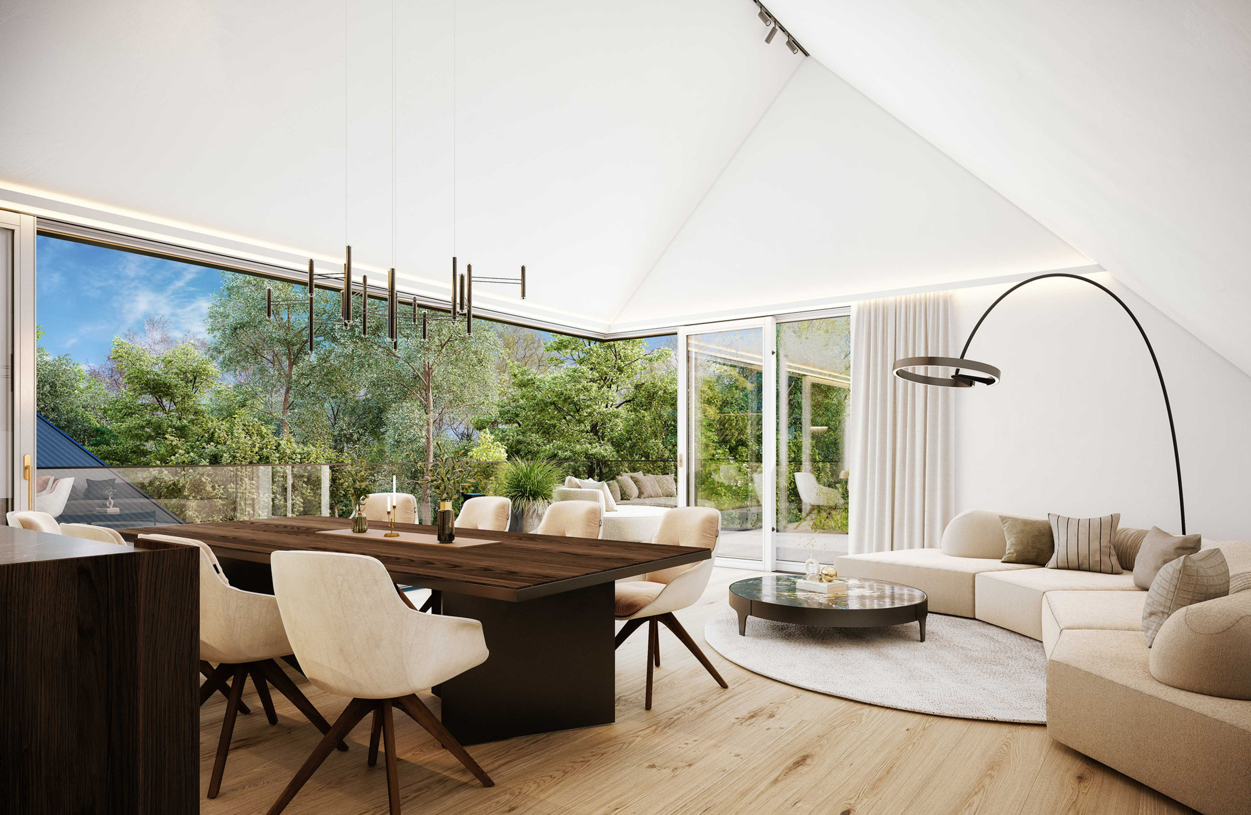 Diese stilvolle 3-Zimmer-Gartenwohnung bietet auf ca. 90 m² elegantes Wohnen in bester Qualität. Der lichtdurchflutete Wohn- und Essbereich mit integrierter Küche (ca. 43 m²) öffnet sich direkt in den privaten Garten und schafft ein modernes, offenes Wohnambiente. Ein Kinderzimmer mit Bad, ein Elternschlafzimmer mit En-Suite-Bad sowie Gäste-WC und Wirtschaftsraum runden das Angebot ab.